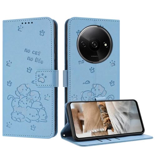 Funda de Cuero con Diseño de Gatito En Relieve y Cordón para Redmi A3 4G Global / A3X 4G (Azul)