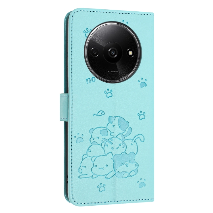 Funda de Piel con Diseño de Gatito En Relieve y Cordón para Redmi A3 4G Global / A3X 4G (Verde Menta)