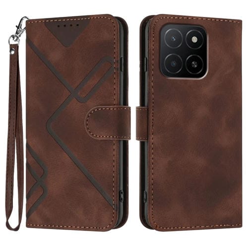 Funda de Cuero para Honor X5B y X5B Plus con Diseño de Líneas Globales (Café)