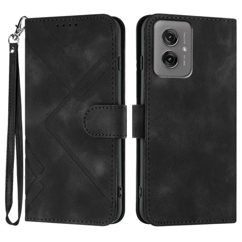 Funda de Cuero Motorola Moto G55 con Diseño de Líneas y Tacto Suave (Negra)
