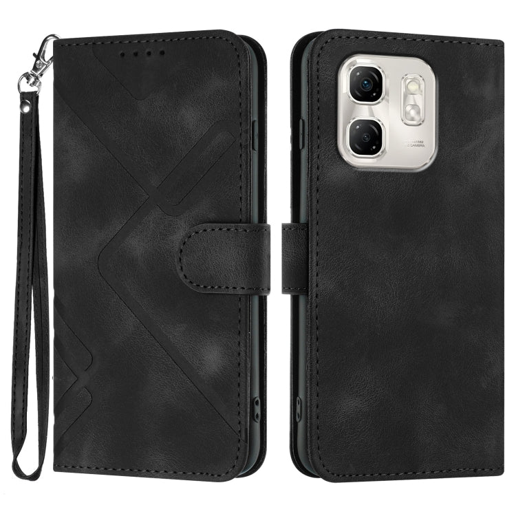 Funda de Cuero para Infinix Hot 50I y Smart 9 con Diseño de Líneas y Tacto Suave (Negro)