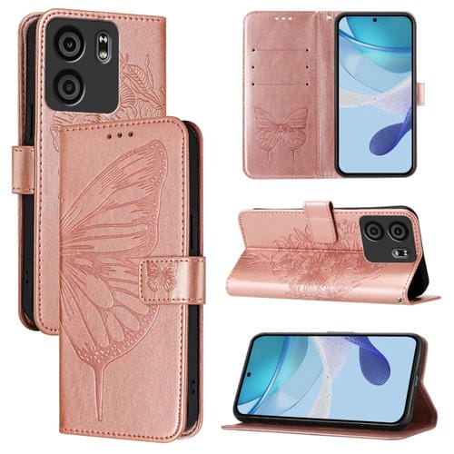 Funda de Cuero Blu View 5 Diseño Mariposa en Relieve (Oro Rosa)
