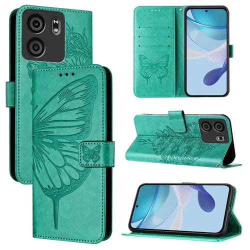 Funda de Cuero Blu View 5 Diseño Mariposa Relieve (Verde)