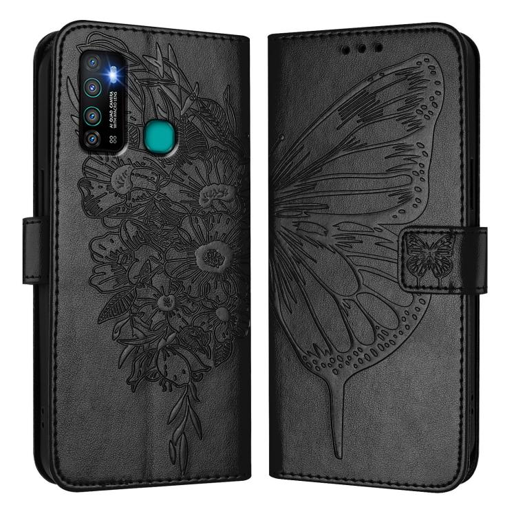 Funda de Cuero para Infinix Hot 9/9 Pro con Diseño de Mariposa en Relieve (Negra)