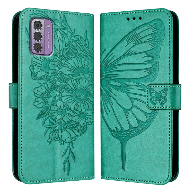 Funda de Cuero para Nokia G42/G310 con Diseño de Mariposa en Relieve (Verde)