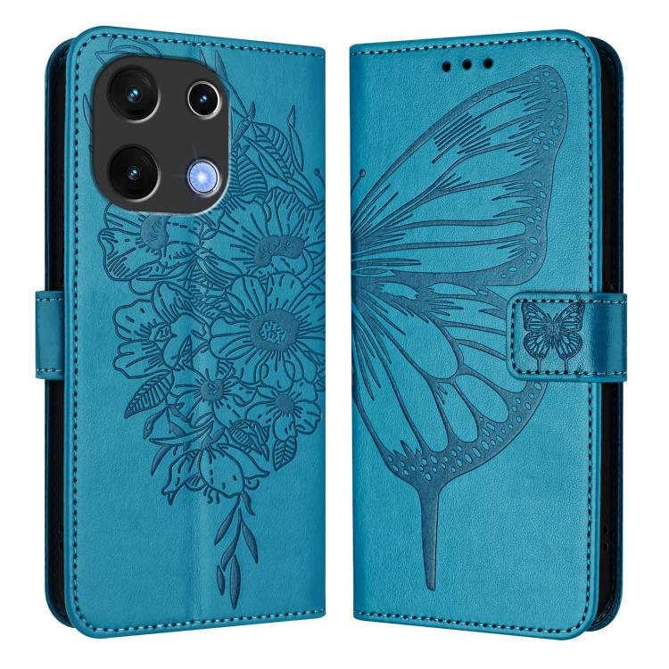 Funda de Cuero para Umidigi Note 100 con Diseño de Mariposa en Relieve (Azul)