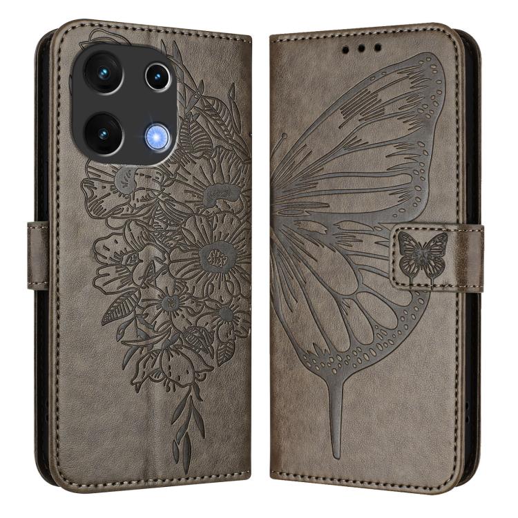 Funda de Cuero para Umidigi Note 100 con Diseño de Mariposa En Relieve (Gris)