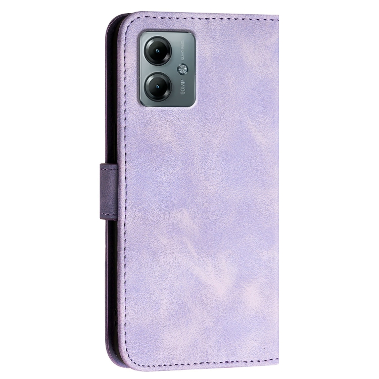 Funda de Cuero Motorola Moto G Play 2025 y G Power 2025 con Diseño Mariposa y Cuadrícula (Morado Claro)