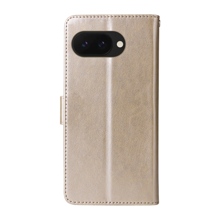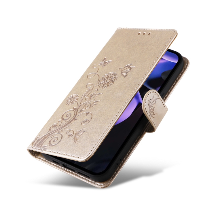 Funda de Cuero Google Pixel 9A con Diseño de Mariposas y Flores en Relieve (Dorada)