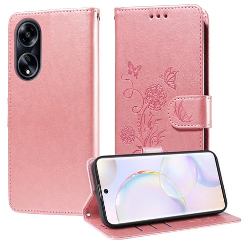Funda de Cuero con Diseño de Mariposas y Flores En Relieve para Oppo A1/A98/F23 5G (Oro Rosa)