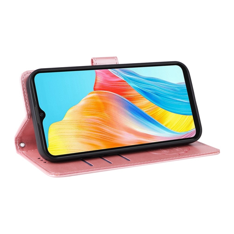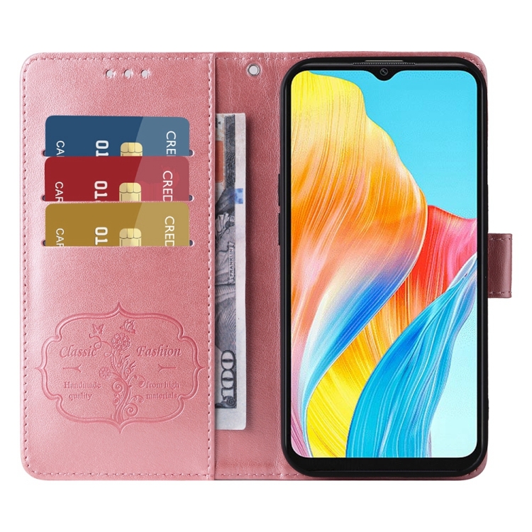 Funda de Cuero con Diseño de Mariposas y Flores En Relieve para Oppo A38 4G Global/A18 4G (Oro Rosa)