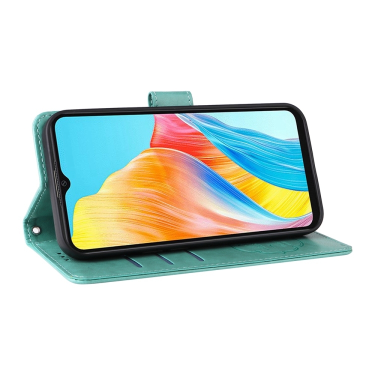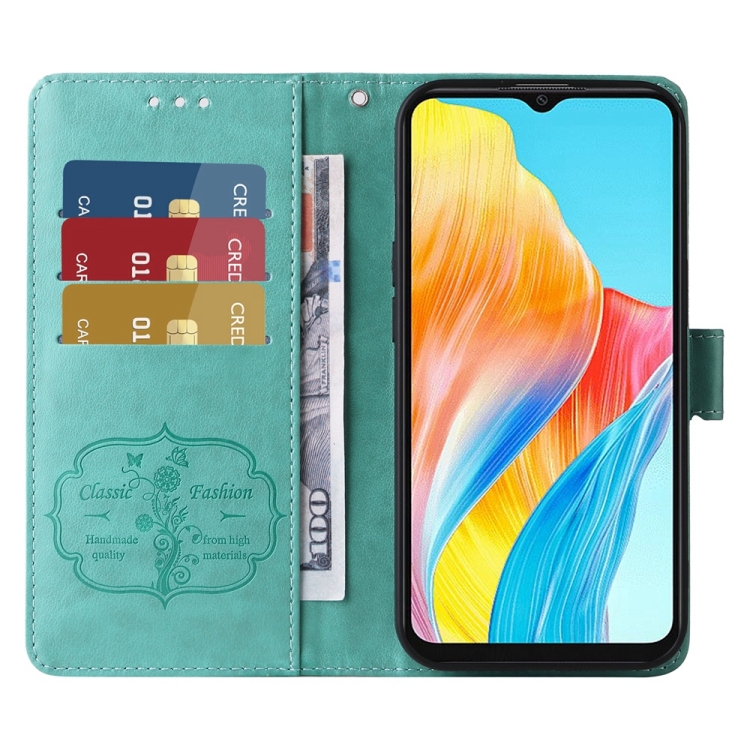 Funda de Cuero con Diseño de Mariposas y Flores En Relieve para Oppo A38 4G Global/A18 4G (Verde)