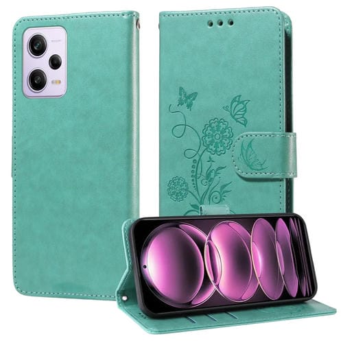 Funda de Cuero con Diseño de Mariposas y Flores En Relieve para Redmi Note 12 Explorer/Note 12 Pro+ (Verde)