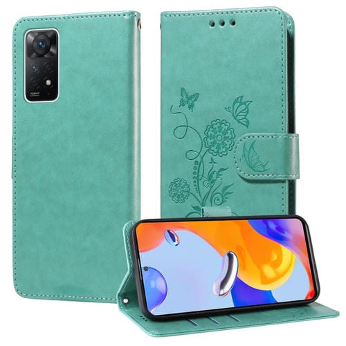 Funda de Cuero con Diseño de Mariposas y Flores En Relieve para Redmi Note 12 Pro 4G (Verde)