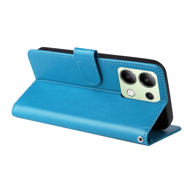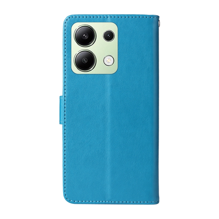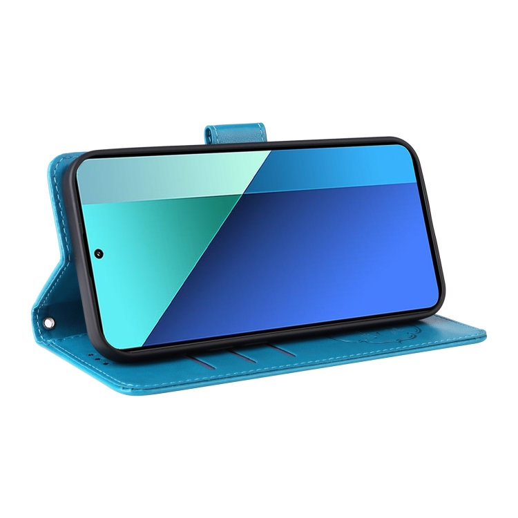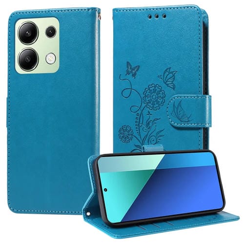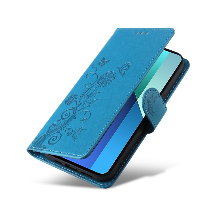 Funda de Cuero con Diseño de Mariposas y Flores En Relieve para Redmi Note 13 4G (Azul)