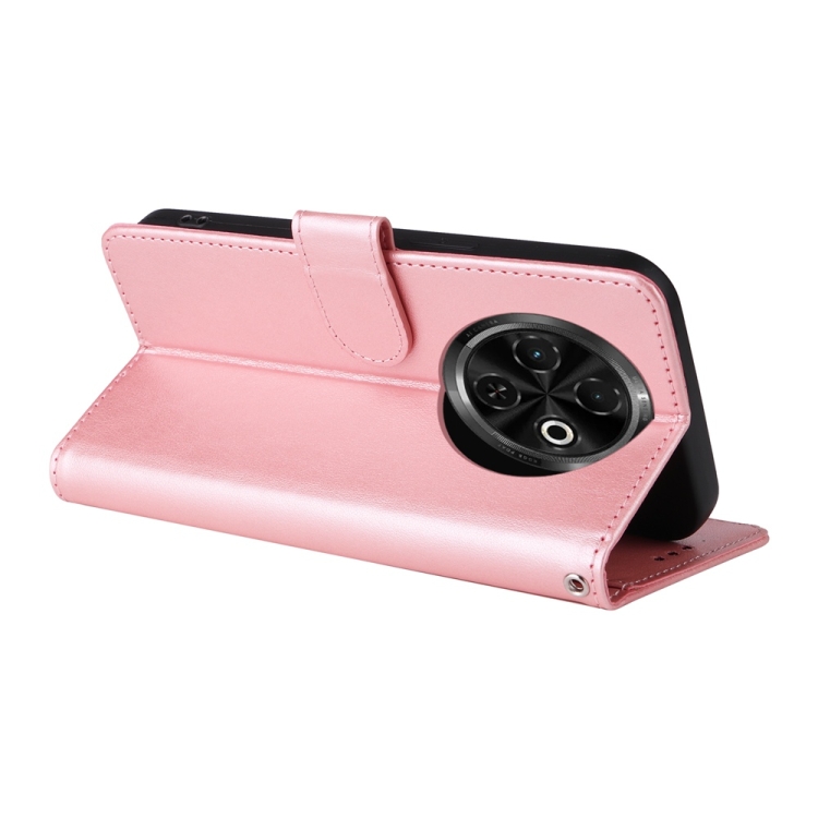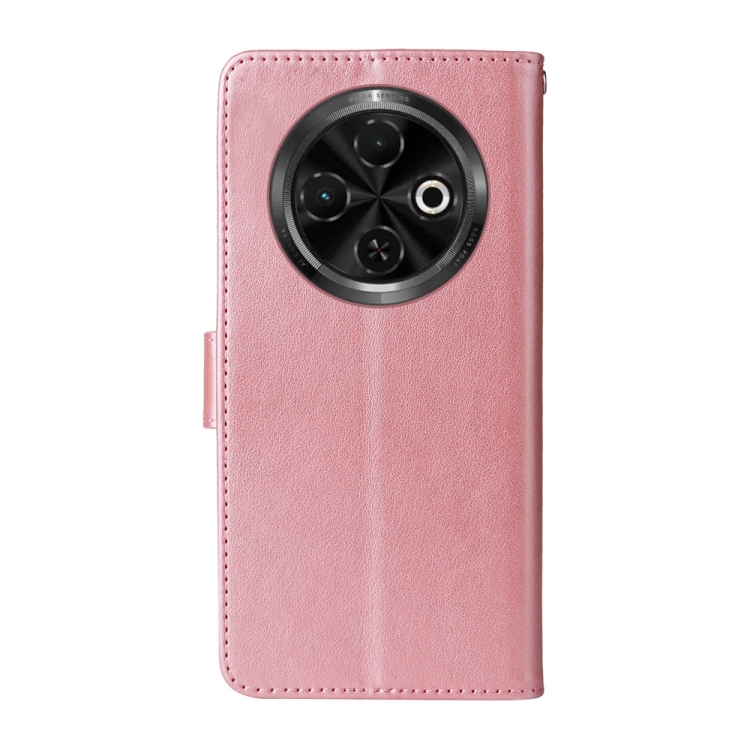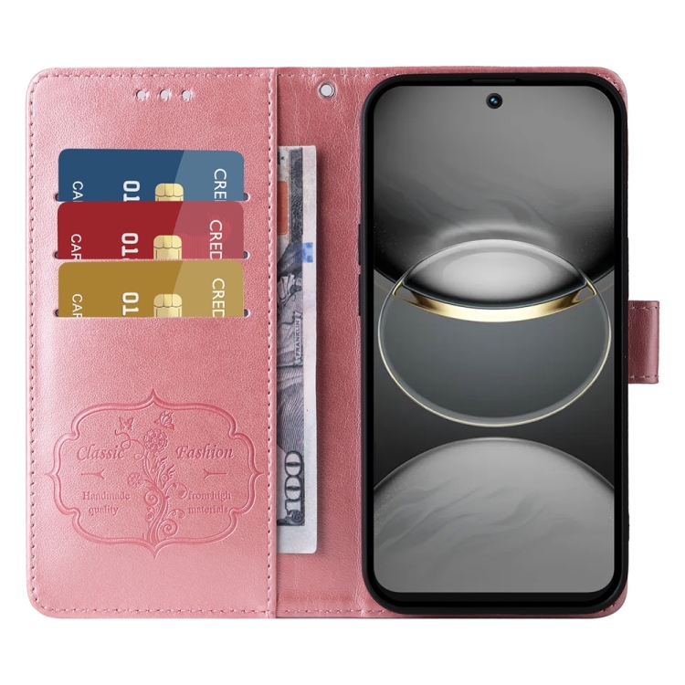 Funda de Cuero para Tecno Spark 30C con Diseño de Mariposas y Flores en Relieve (Oro Rosa)