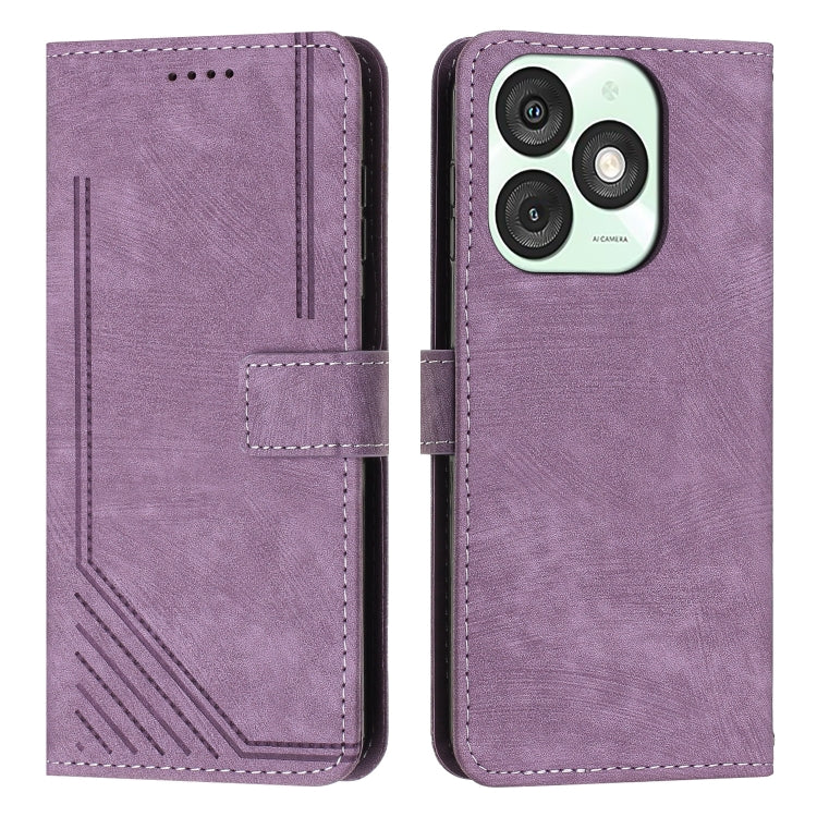 Funda de Cuero para Itel A50 con Diseño de Rayas y Cordón (Morado)