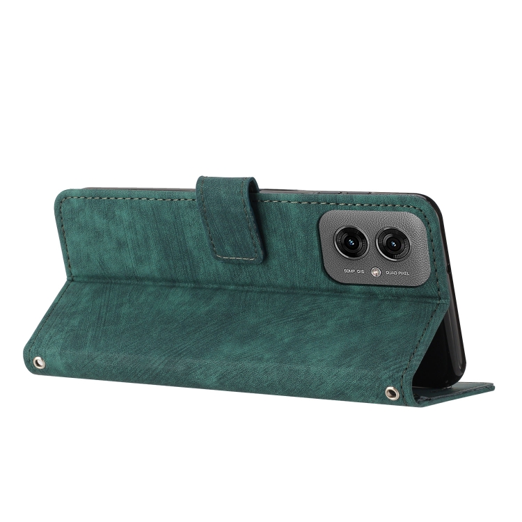 Funda de Cuero Motorola Moto G55 Diseño de Rayas Tacto Sedoso (Verde)