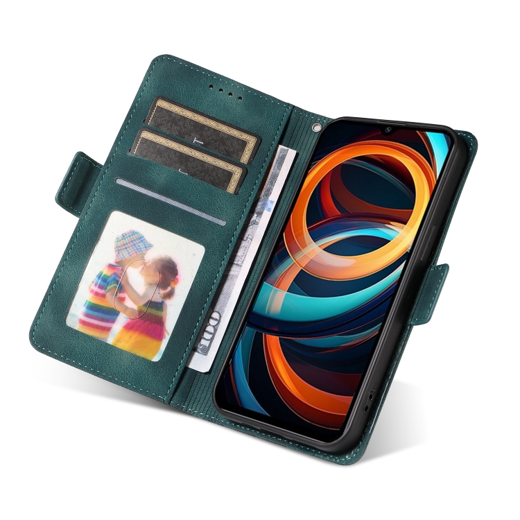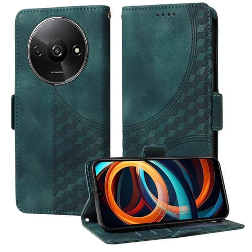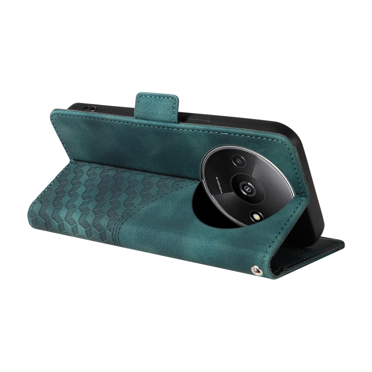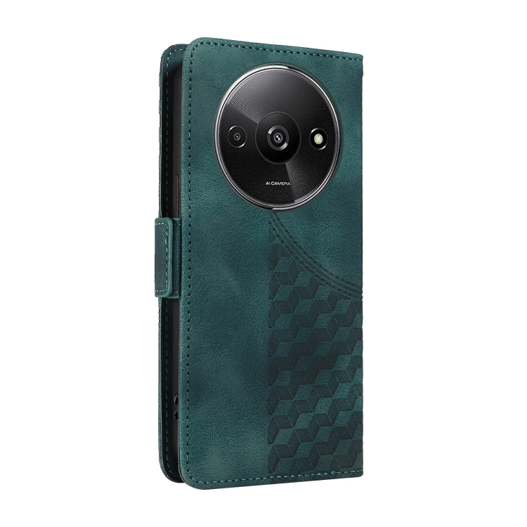 Funda de Cuero con Diseño de Rombos y Estrellas En Relieve para Xiaomi Poco C61 (Verde)