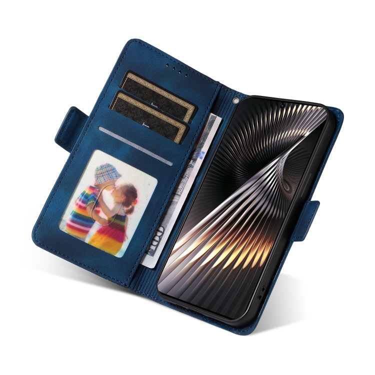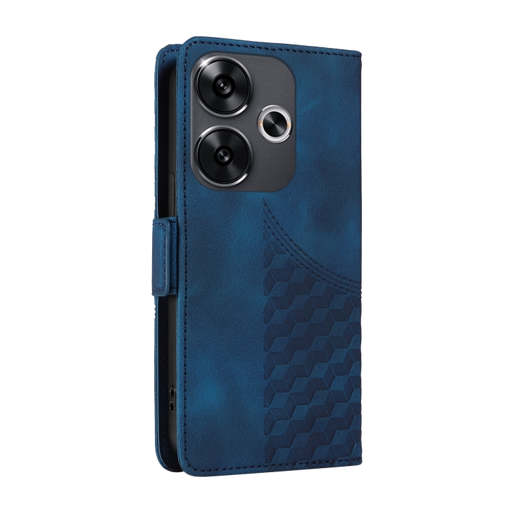 Funda de Cuero con Diseño de Rombos y Estrellas En Relieve para Xiaomi Poco F6 (Azul)