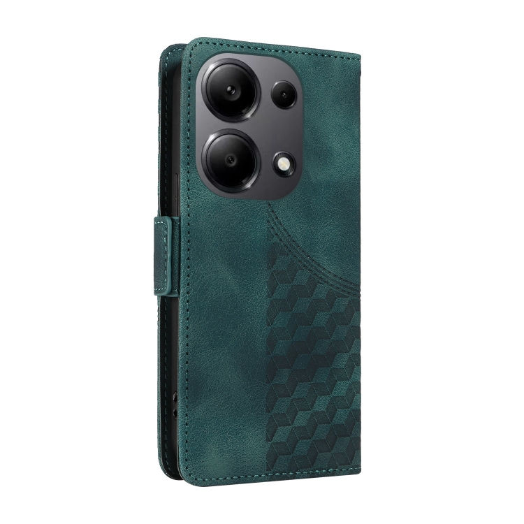 Funda de Cuero con Diseño de Rombos y Estrellas En Relieve para Xiaomi Poco M6 Pro 4G (Verde)