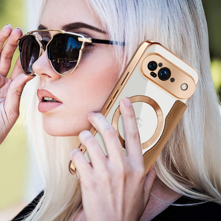 Funda de Cuero para Google Pixel 9 con Diseño de Rombos y Protección Rfid Magsafe (Marrón)