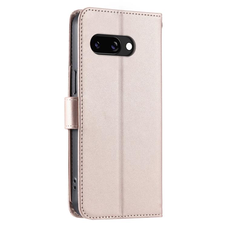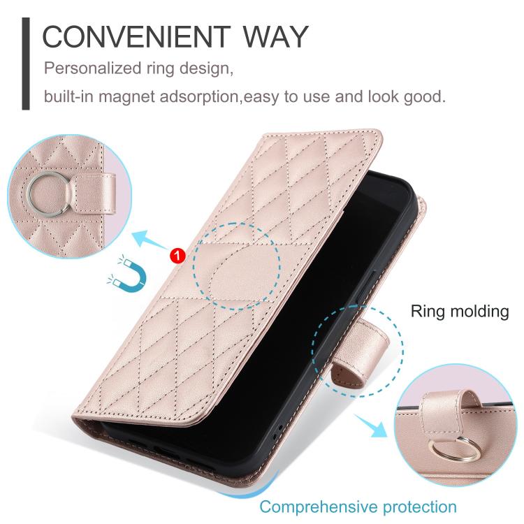 Funda de Cuero con Diseño Rómbico y Hebilla de Anillo para Google Pixel 9A (Oro Rosa)