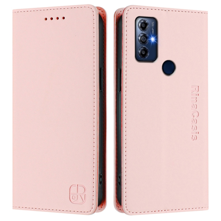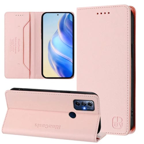 Funda de Cuero Motorola Moto G Play 2022 Rc01 con Doble Pliegue y Succión Magnética (Rosa)