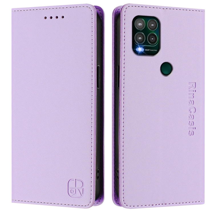 Funda de Cuero con Doble Pliegue y Succión Magnética para Motorola Moto G Stylus 5G 2021 (Morado Claro)