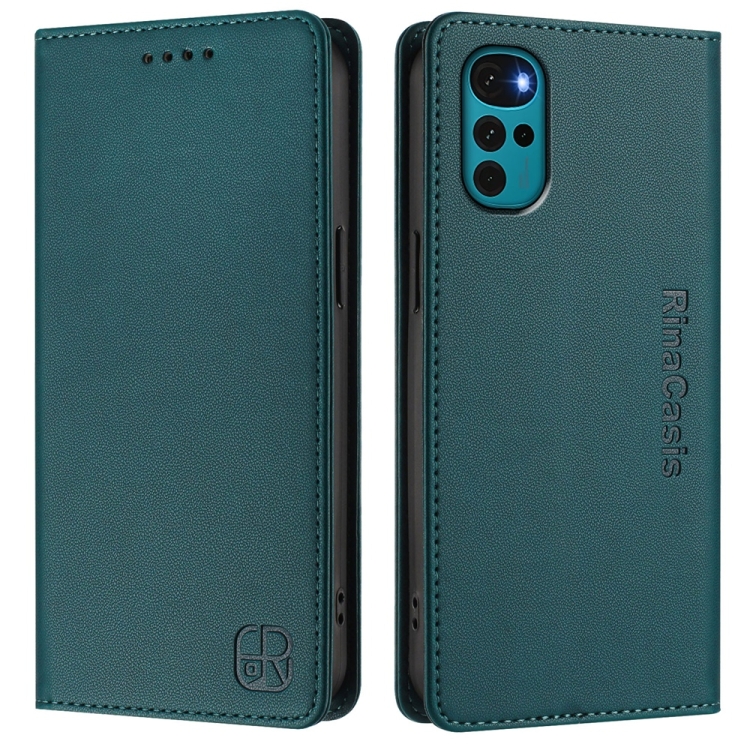 Funda de Cuero con Doble Pliegue y Succión Magnética para Motorola Moto G22/E32/E32S Rc01 (Verde Oscuro)