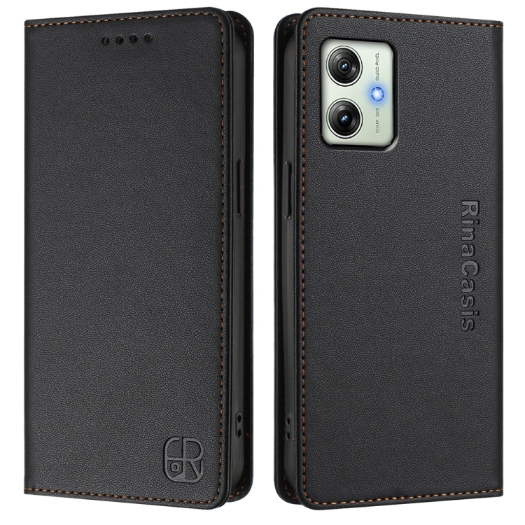 Funda de Cuero con Doble Pliegue y Succión Magnética para Motorola Moto G64 5G / G54 / G54 Power Rc01 (Negra)