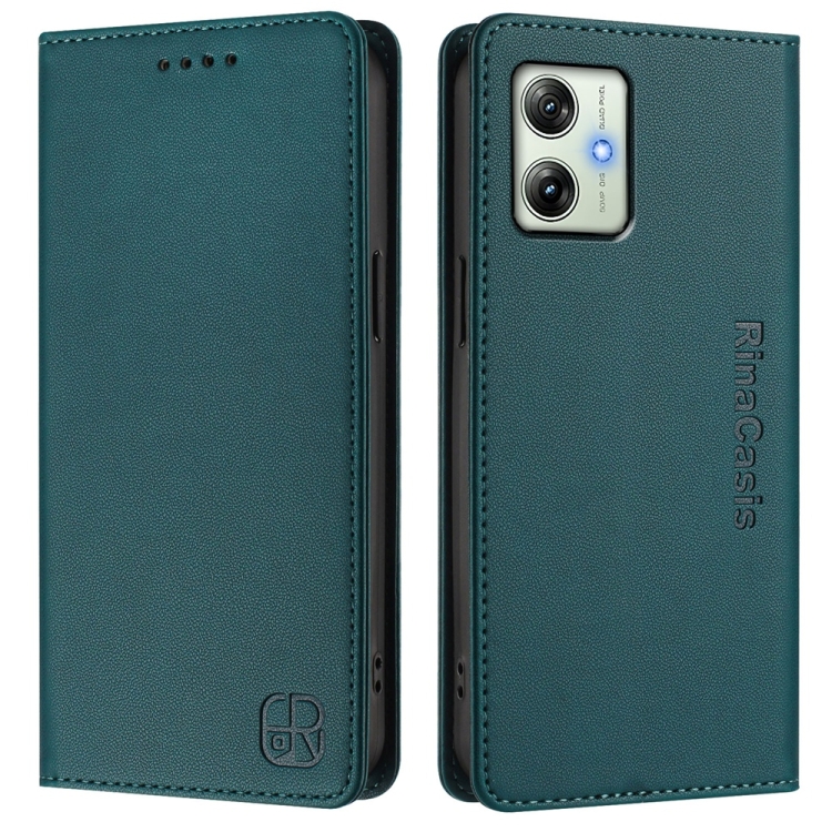 Funda de Cuero con Doble Pliegue y Succión Magnética para Motorola Moto G64 5G / G54 / G54 Power Rc01 (Verde Oscuro)