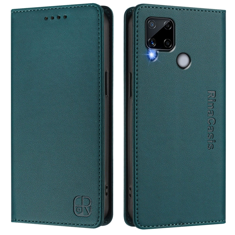 Funda de Cuero con Doble Pliegue y Succión Magnética para Realme C25/C15/C12/C25S Rc01 (Verde Oscuro)