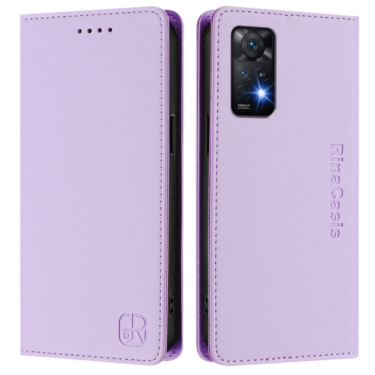 Funda de Cuero con Doble Pliegue y Succión Magnética para Redmi Note 11 Pro 5G/4G/Global Rc01 (Morado Claro)