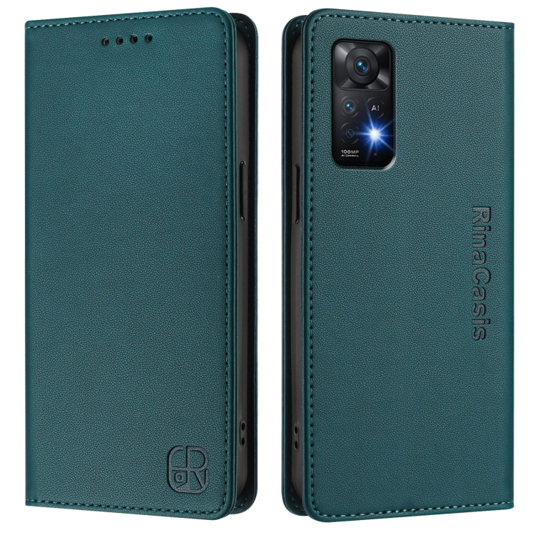 Funda de Cuero con Doble Pliegue y Succión Magnética para Redmi Note 11 Pro 5G/4G/Global Rc01 (Verde Oscuro)