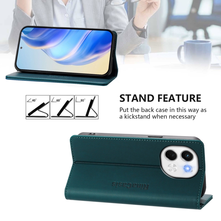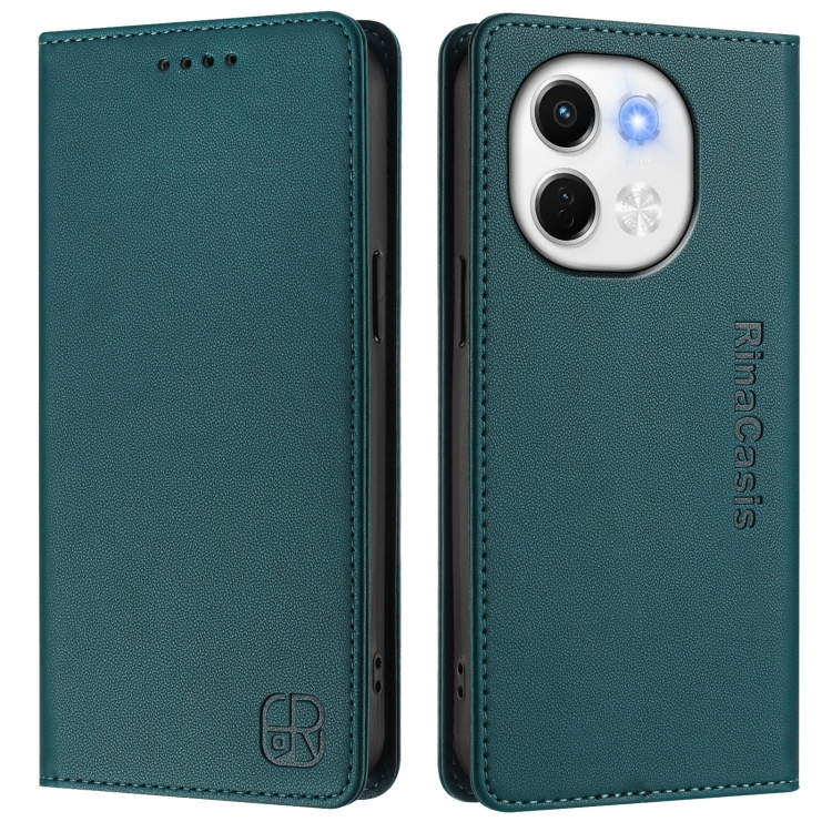 Funda de Cuero con Doble Pliegue y Succión Magnética RFID para Tecno Spark 30 5G y Pova 6 Neo 5G Rc01 (Verde Oscuro)