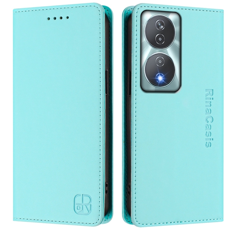 Funda de Cuero con Doble Pliegue y Succión Magnética Rfid para Honor 90 Smart / X7B 5G / 4G Global Rc01 (Verde Menta)