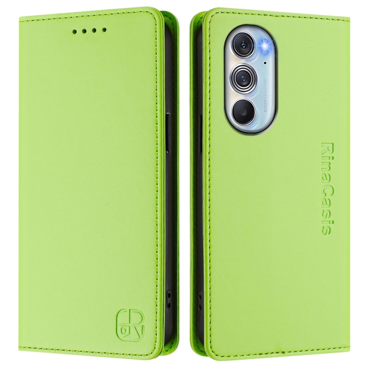 Funda de Cuero Motorola Edge 30 Pro Edge X30 Rc01 con Doble Pliegue y Succión Magnética (Verde Hierba)