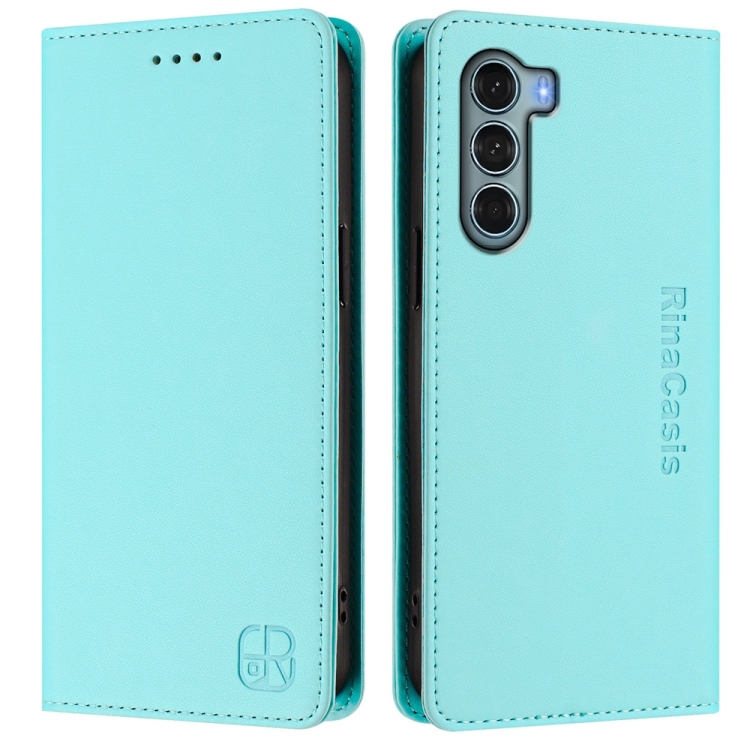 Funda Cuero Motorola Edge S30 Moto G200 5G Rc01 Doble Pliegue Succión Magnética (Verde Menta)