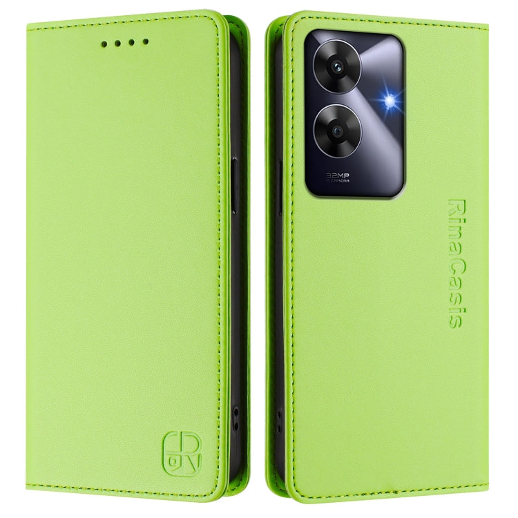 Funda de Cuero con Doble Pliegue y Succión Magnética para Teléfono Realme Note 60 4G/C61 4G India Rc01 (Verde Hierba)