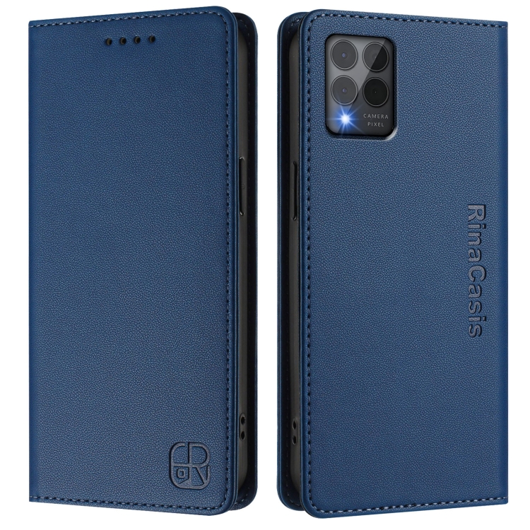 Funda de Cuero T-Mobile Revvl 6 Pro/6X Pro 5G Rc01 con Doble Pliegue y Succión Magnética (Azul Oscuro)