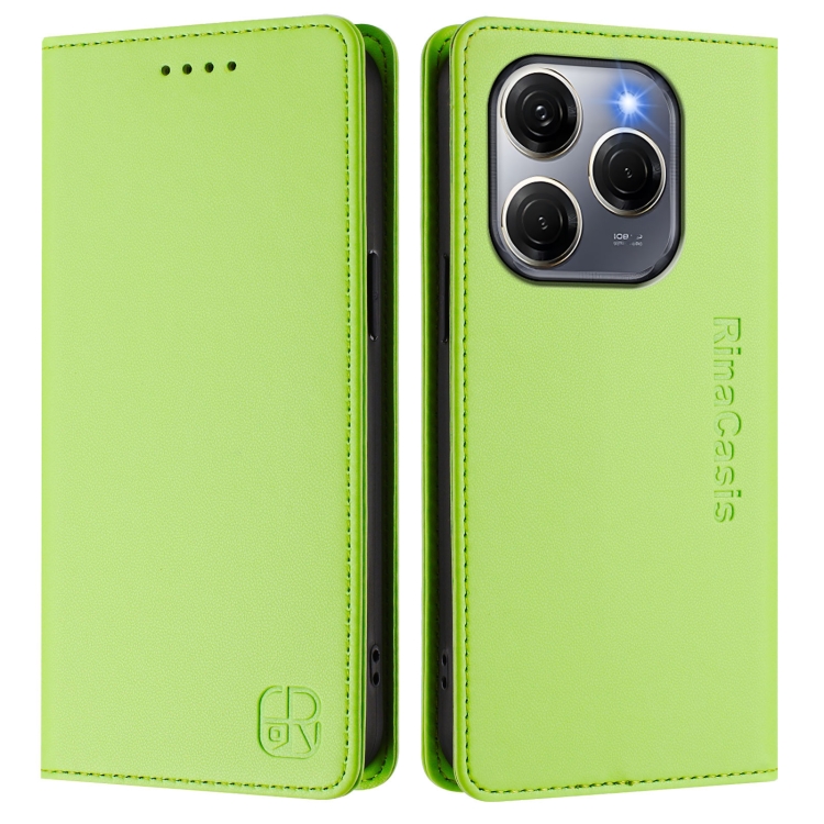 Funda de Cuero para Tecno Spark 20 Pro 5G Rc01 con Doble Pliegue y Succión Magnética Rfid (Verde Hierba)