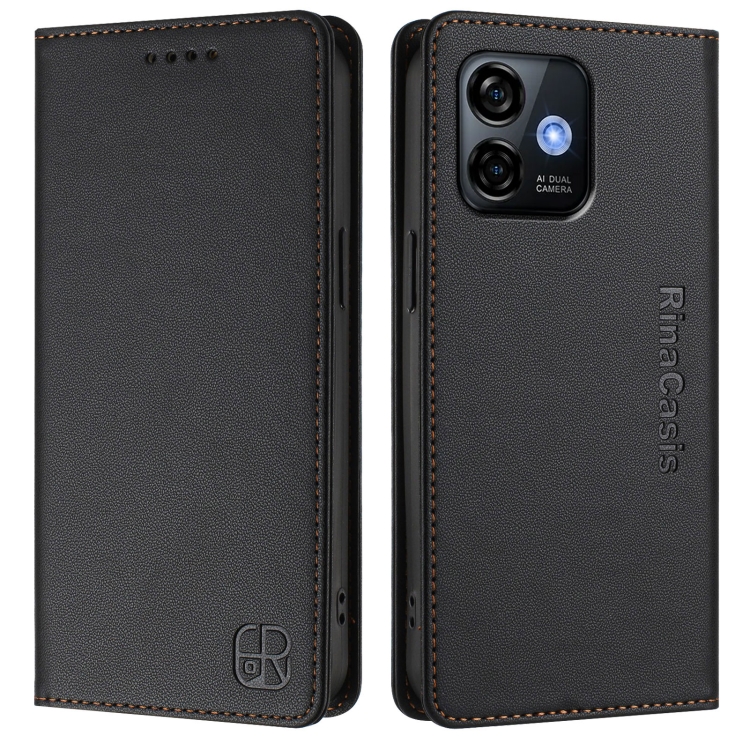 Funda de Cuero para Ulefone Note 16 Pro Rc01 con Doble Pliegue y Succión Magnética (Negro)