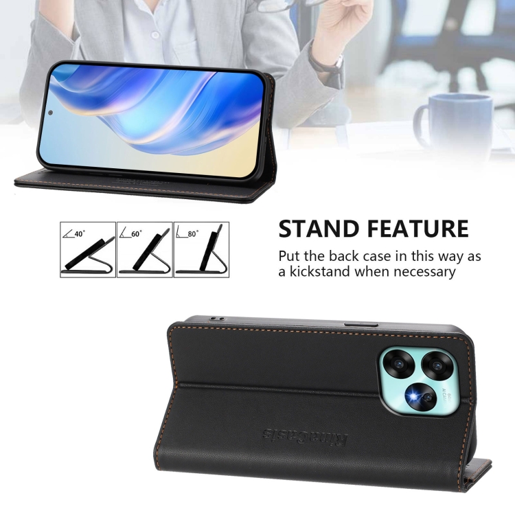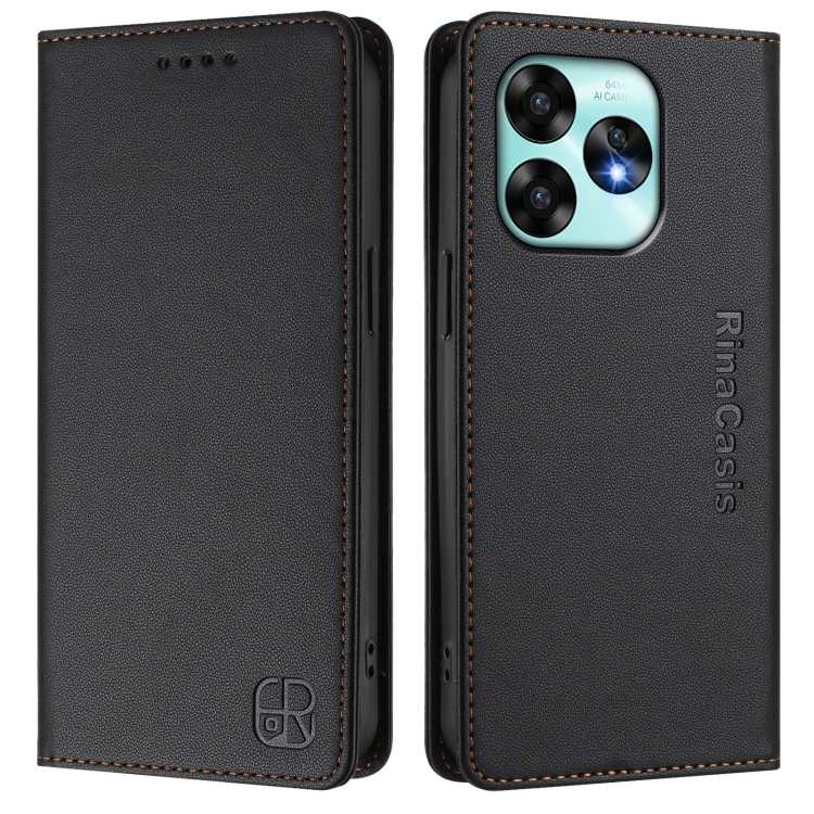 Funda de Cuero Umidigi A15/A15C/A15T Rc01 con Doble Pliegue y Succión Magnética (Negro)