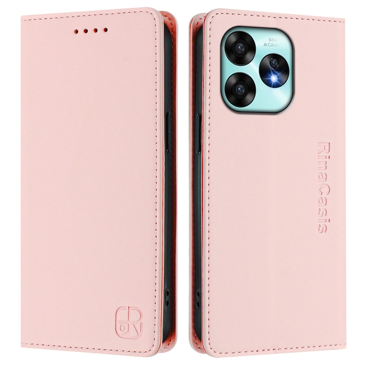 Funda de Cuero para Teléfono Umidigi A15/A15C/A15T Rc01 con Doble Pliegue y Succión Magnética (Rosa)