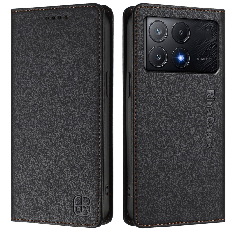 Funda de Cuero con Doble Pliegue y Succión Magnética para Xiaomi Poco X6 Pro/Redmi K70E Rc01 (Negra)