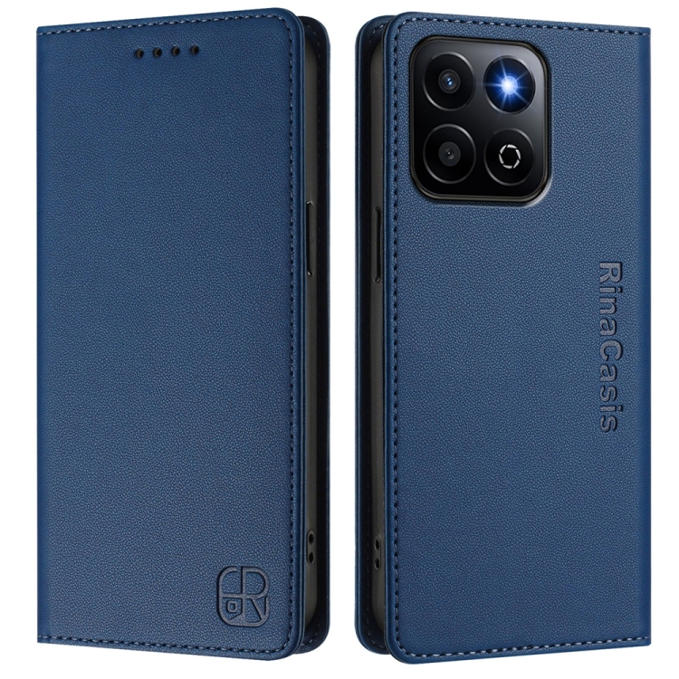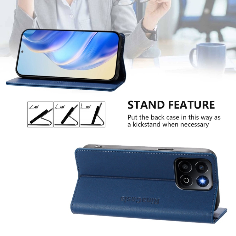 Funda de Cuero con Doble Pliegue y Succión Magnética Rfid para Honor 200 Smart Global / X7C 4G Rc01 (Azul Oscuro)