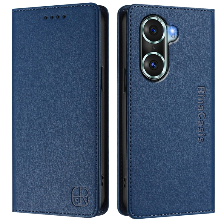 Funda de Cuero con Doble Pliegue y Succión Magnética Rfid para Honor 60 Pro Rc01 (Azul Oscuro)