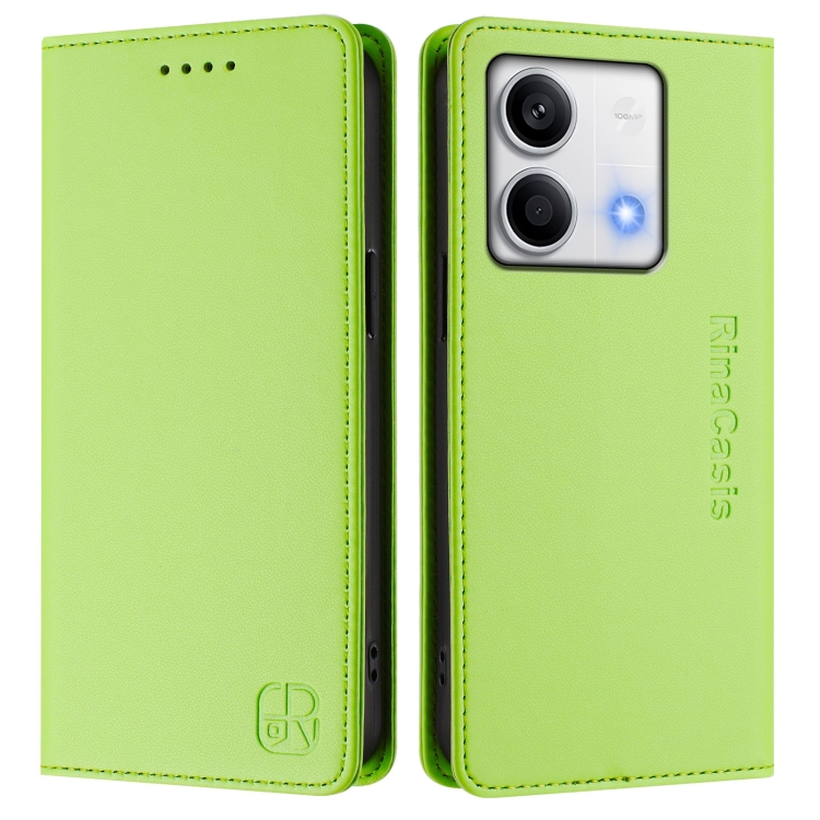 Funda de Cuero con Doble Pliegue y Succión Magnética Rfid para Redmi Note 13 5G Global Rc01 (Verde Hierba)