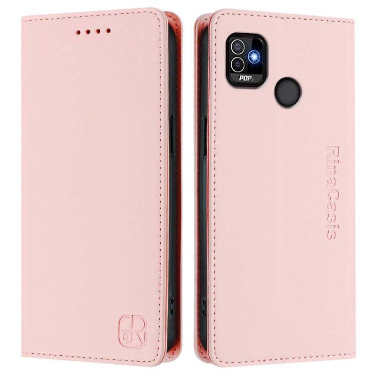 Funda de Cuero con Doble Pliegue y Succión Magnética RFID para Tecno Pop 5 Rc01 (Rosa)